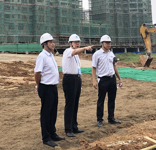 6月25日,广西建工集团有限责任公司党委副书记、副董事长、总经理罗涛带队到冶建公司承建的扶绥县城市棚户区改造项目(五期)Ⅱ标项目开展上半年质量安全检查。集团公司邱国兴陪同。