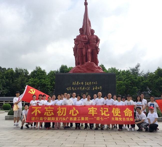 6月29日,广西建工集团有限责任公司机关党委第二党支部与中国建设银行南宁朝阳支行党总支在南宁市南湖公园开展“不忘初心、牢记使命”主题健步走活动,共同庆祝中国共产党成立98周年。集团公司总会计师李静丹参加活动。