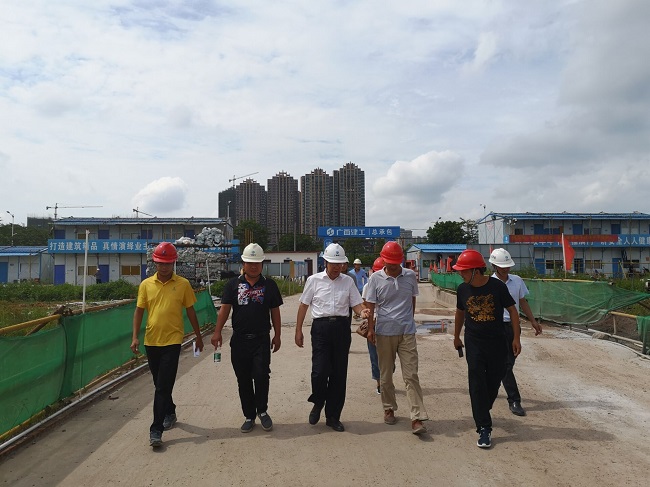 7月11日,广西建工集团有限责任公司党委副书记、副董事长、总经理罗涛到总承包公司承建的钦州松江宁越东园项目检查指导。