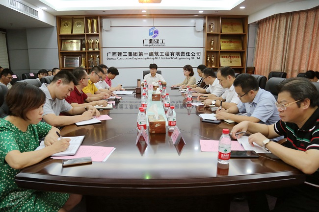 8月13日,广西建工集团有限责任公司党委副书记、副董事长、总经理罗涛到一建公司调研指导亏损项目专项治理工作。公司党委书记、董事长蒙贵飞,党委副书记、纪委书记、工会主席黄远奇,财务总监廖宏福分别汇报专项治理工作情况。集团公司财务资产部副部长、清收清欠办公室主任杨焕菱主持。