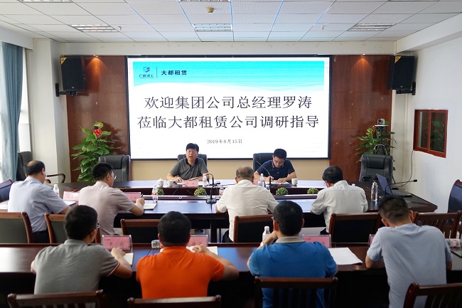 8月15日,广西建工集团有限责任公司党委副书记、副董事长、总经理罗涛到大都租赁公司调研指导。公司党支部书记、董事长黄安权,总经理唐广衎,副总经理邓彦超、陈树华参加调研座谈会。