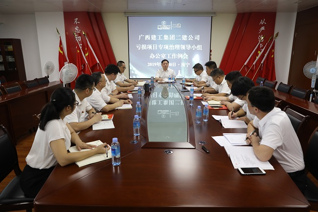 8月30日,广西建工集团第二建筑工程有限责任公司亏损项目专项治理工作领导小组办公室第一次工作例会在建工大厦2号楼1101党员活动室召开,会议总结前期工作,分析目前存在问题,研究部署下一阶段工作。集团公司副总经理、二建公司党委书记、董事长、亏损项目专项治理工作领导小组组长赖榆出席并讲话,党委副书记、纪委书记、工会主席、亏损项目专项治理工作领导小组副组长兼办公室主任黄志坚主持。