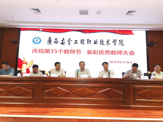 9月10日,广西安全工程职业技术学院举行庆祝第35个教师节优秀教师表彰大会。广西建工集团副总经理陈礼松出席并致辞。自治区应急管理厅党组成员、副厅长陈家良参加。
