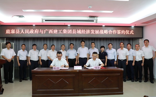 10月11日,广西建工集团有限责任公司与鹿寨县人民政府在鹿寨县政府办公楼4楼会议室举行县域经济发展战略合作签约仪式。集团公司党委书记、董事长金宁运,鹿寨县委书记何世恰致辞并共同见证双方签约。集团公司总经理助理、投资发展部部长黄鸣,鹿寨县委副书记、县长王轶分别代表双方签订战略合作协议。鹿寨县人大主任陈国斌、县政协主席袁子强参加。鹿寨县人民政府副县长黄中主持。
