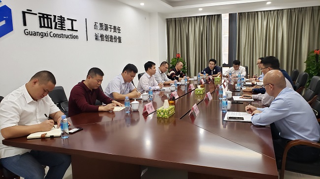 11月13日,广西建工集团有限责任公司副总经理陈礼松在建工大厦1号楼1921会议室会见海螺水泥股份有限公司纪委书记陈永波,双方就水泥业务合作事宜进行洽谈。
