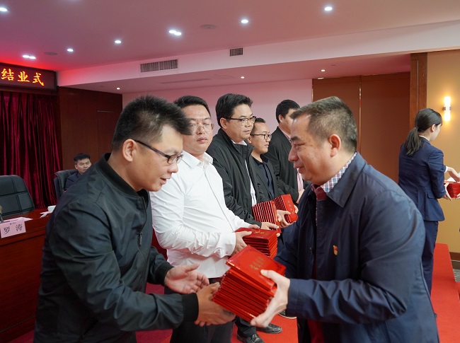 集团公司刘新宁、毛晓冬、邱国兴、方世川、陈怡君,企业管理部、组织人事部有关人员,各建安企业70位优秀项目经理参加结业式。