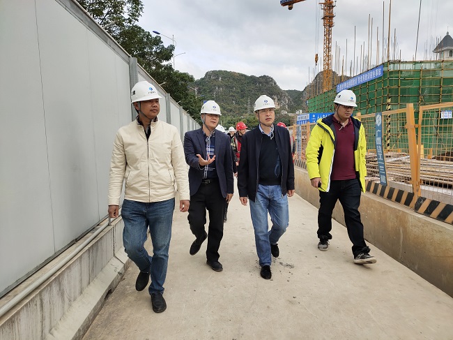 11月28日,广西建工集团有限责任公司专职外部董事韩国宁到三建公司大都沁园项目调研指导。公司安全总监覃承敏陪同。