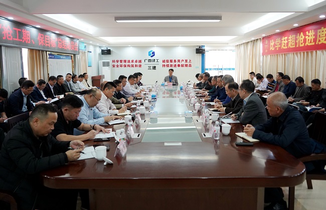 12月16日,广西建工集团有限责任公司在建工城项目7#地块三建公司项目部会议室召开建工城安置房项目“抢工期、保目标”总结动员会议,总结今年以来项目抢工情况,全力冲刺明年5月25日全部安置房交付入住的最终目标。集团公司党委书记、董事长金宁运出席并讲话。副总经理侯立林主持。
