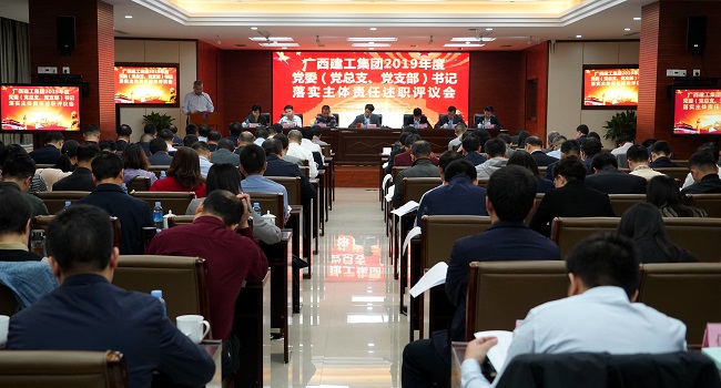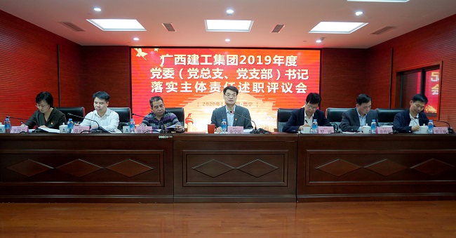 1月10日,广西建工集团有限责任公司党委2019年度所属企业党委(党总支、党支部)书记落实主体责任述职评议会议在建工大厦2306会议室召开。集团公司党委书记、董事长金宁运主持并讲话。集团公司党委副书记、副董事长、总经理罗涛,在家领导班子成员陈家坚、余仲远、陈礼松、侯立林、李静丹出席。自治区国资委宣传处处长(党委宣传部、统战部部长,文明办主任)吴双平到会指导。