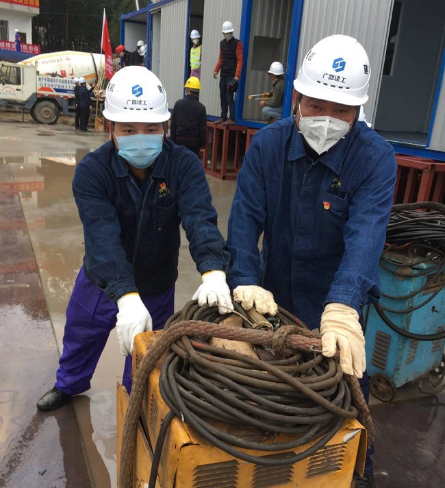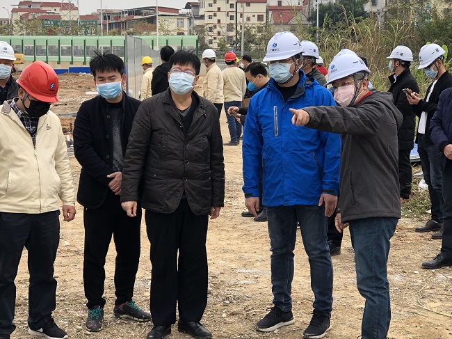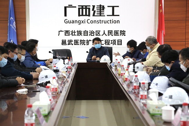 疫情就是命令。1月27日,自治区党委、政府决定将新型冠状病毒感染的肺炎疫情定点治疗医院——广西壮族自治区人民医院邕武医院扩建工程(临时负压病房,俗称“广西小汤山”)交由集团公司承建,这一使命光荣、责任重大,集团公司党委书记、董事长金宁运立即召开会议专题部署,并担任项目总负责人,要求不讲条件、不计成本,按照自治区党委、政府的要求,高质量、安全、快速地完成建设施工任务,为打赢疫情防控阻击战贡献力量。同时先后于1月28日、2月3日、2月4日、2月6日四次到项目工地检查指导,4次召开会议协调项目推进工作。党委副书记、副董事长、总经理罗涛直接负责项目推进工作,每天到项目现场检查指导,协调解决人员配备、材料供应等问题。2月4日,自治区主席、自治区新型冠状病毒感染的肺炎疫情防控工作领导小组组长陈武到项目检查指导,充分肯定施工进度,对一线施工人员日夜奋战的辛勤付出表示感谢。