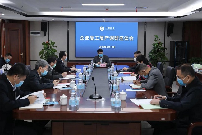 在疫情防控的关键时期和企业复工复产的重要阶段,金宁运深入智慧制造公司成型钢筋生产车间、产投公司南宁装配式建筑产业基地PC构件生产车间、基础公司机关总部开展调研,实地了解生产车间、机关疫情防控情况和复工复产、生产经营情况,解决企业遇到的难题,进一步坚定了三家企业战胜疫情和加快复工复产的信心决心。在调研座谈会上,金宁运认真听取三家企业负责人的情况汇报,与参会人员讨论市场开拓、企业管理、清收清欠、资金使用、成型钢材供应等问题,研究疫情期间加快复工复产的应对措施和对策。