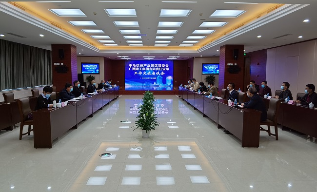 3月17日,广西建工集团有限责任公司与中马钦州产业园区管委会举行工作交流座谈会,共商加快推进广西泰嘉超薄玻璃基板深加工项目建设事宜。集团公司党委副书记、副董事长、总经理罗涛,钦州市委副书记、管委会常务副主任高朴,管委会副主任赵越参加。