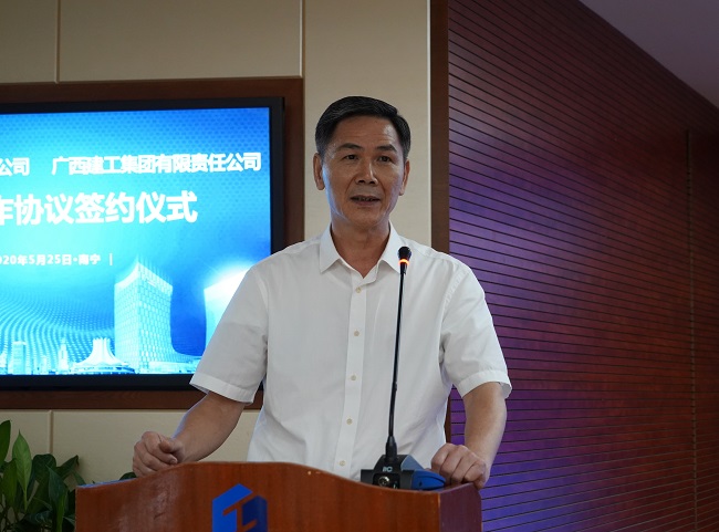 金宁运在致辞中对甘承会一行的到来表示热烈欢迎,对双方签约表示祝贺,并简要介绍集团公司近年来发展情况。他说,农垦集团按照中央和自治区的部署要求,扎实推进改革发展,紧紧围绕“一核三新”主导产业发展目标,聚焦发展改革,取得积极进展,在全国农垦改革中走在前列,经验做法非常值得建工集团学习借鉴。近年来,建工集团的发展得到农垦集团的大力支持,建立了良好的合作关系。此次战略合作签约标志着双方合作进入新的发展阶段,建工集团将秉承“品质源于责任,诚信创造价值”核心企业理念,在双方良好合作基础上,珍惜和农垦集团的合作缘分,信守合作协议,本着依法依规、优势互补、合作共赢的原则,共同推进双方企业高质量发展,为建设壮美广西、共圆复兴梦想做出新的贡献。