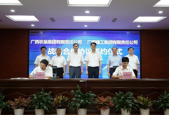 5月25日,广西建工集团有限责任公司与广西农垦集团有限责任公司战略合作协议签约仪式在建工大厦1号楼2306会议室举行。广西建工集团党委书记、董事长金宁运,广西农垦集团党委书记、董事长甘承会分别致辞并见证签约。集团公司党委副书记、副董事长、总经理罗涛与农垦集团党委副书记、总经理谭良良分别代表双方签署战略合作协议。集团公司副总经理、一安公司党委书记、董事长唐农生主持,集团公司副总经理、二建公司党委书记、董事长赖榆,农垦集团党委副书记、工会主席翁科,副总经理、总会计师、广糖集团董事长李东参加。