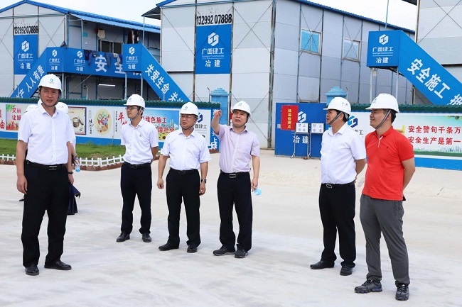 6月12日,广西建工集团有限责任公司副总经理陈礼松到冶建公司承建的象州县城北一区城中村棚户区改造项目,检查指导项目筹备来宾市安全文明标准化示范工地现场观摩会工作。集团公司总经理助理、企业管理部部长刘新宁,冶建公司领导班子成员覃振华、蒙胜益、赖海标、唐峰、周善学、何勇陪同。