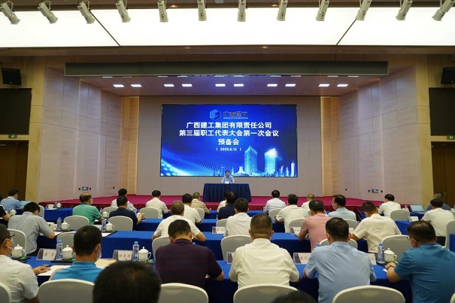 6月15日,广西建工集团有限责任公司第三届职工代表大会第一次会议预备会在南宁荔园饭店报告厅召开。集团公司党委书记、董事长金宁运主持并讲话。集团公司党委副书记、副董事长、总经理罗涛和领导班子陈家坚、余仲远、陈礼松、唐农生、侯立林、赖榆、李静丹参加。