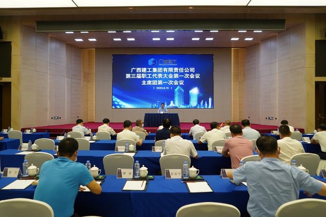 6月15日,广西建工集团有限责任公司第三届职工代表大会第一次会议主席团第一次会议在南宁荔园饭店报告厅召开。集团公司党委书记、董事长金宁运主持并讲话。集团公司党委副书记、副董事长、总经理罗涛和领导班子陈家坚、余仲远、陈礼松、唐农生、侯立林、赖榆、李静丹参加。
