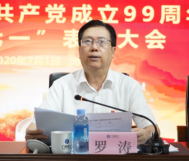 7月1日,广西建工集团有限责任公司党委庆祝中国共产党成立99周年暨“七一”表彰大会在建工大厦1号楼2306会议室召开。集团公司党委书记、董事长金宁运出席并讲话,党委副书记、副董事长、总经理罗涛宣读表彰决定,党委副书记、工会主席陈家坚主持,在家领导班子成员余仲远、陈礼松、唐农生、赖榆、李静丹出席。