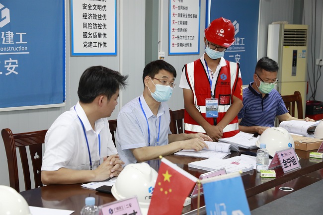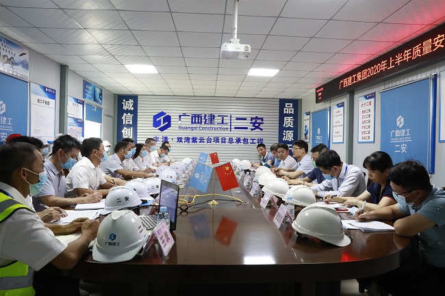 7月2日,广西建工集团有限责任公司党委书记、董事长金宁运率集团公司检查组到二安公司承建的丰泽·双湾紫云台项目开展2020年上半年安全生产大检查。集团公司董事会秘书、总经理助理、办公室主任陆志斌,总经理助理、企业管理部部长刘新宁和二安公司党委书记、董事长潘海洪,副总经理林建明参加。