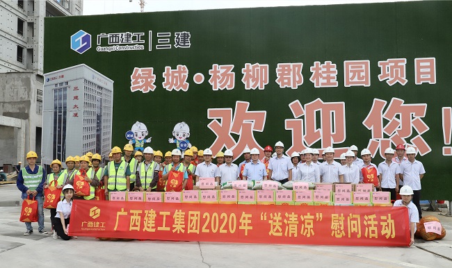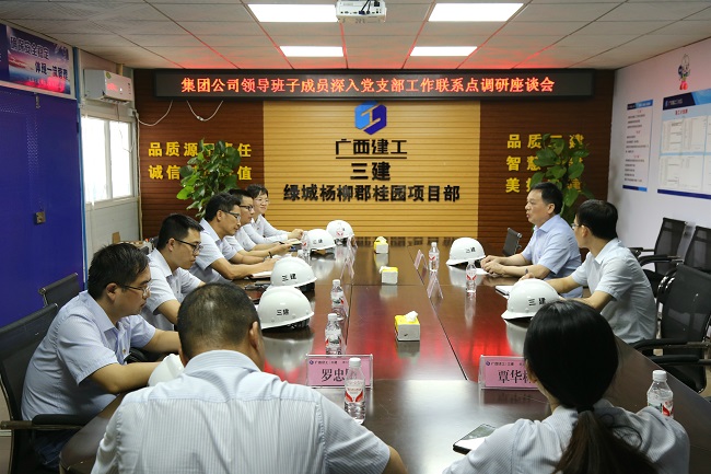 7月2日,广西建工集团有限责任公司纪委书记余仲远率队到三建公司承建的绿城·杨柳郡桂园项目开展党支部工作联系点调研座谈及“送清凉”活动。公司党委书记、董事长欧志永参加。
