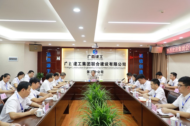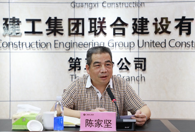 7月17日,广西建工集团有限责任公司党委副书记、工会主席陈家坚到联建公司第三分公司党支部开展基层党支部工作联系点活动,联建公司党委书记、董事长陆彪,党委副书记、纪委书记、工会主席向丹,副总经理、第三分公司党支部书记刘永忠参加。