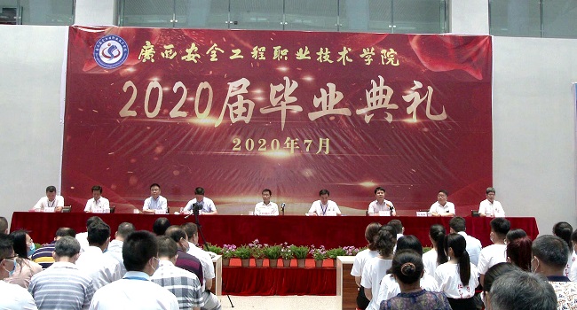 7月18日,广西安全工程职业技术学院举行2020届毕业典礼,广西建工集团有限责任公司副总经理陈礼松出席并致辞,自治区应急管理厅党委委员、政治部主任顾德庆,广西安职院党委书记何平、院长李仲良出席。