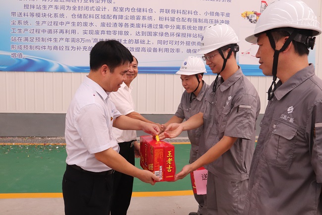 活动前,陈礼松一行深入新余装配PC生产车间详细了解公司首批预制构件订单生产情况,询问装配式项目推进落地中存在的问题,并与广新公司股东单位代表共同为公司高性能混凝土搅拌站正式对外运营揭牌。