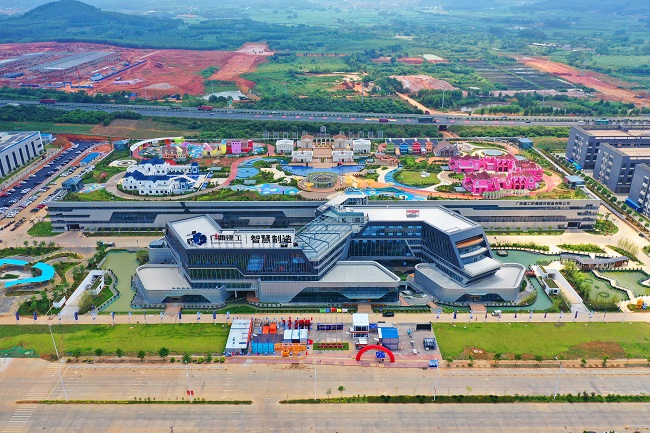 建工产业园内设有高标准的建材研发中心与钢筋智能化深加工基地,广西建工集团智慧制造有限公司充分发挥“一地多用”可持续发展要求,于智能工业厂房屋顶打造兼具轻钢建筑展示与旅游观光两大功能的“卡拉奇遇”空中花园。同时设有游客服务中心、500人宴会厅、200人阶梯式报告厅,配备专业餐饮服务。园区设有专业的工业游览动线和参观廊道,向社会公众展示建筑材料从原料采购、生产加工到成品配送等一站式智能化生产过程,以及轻钢建筑材料应用成果。“卡拉奇遇”建筑以欧式风格为主,设有魔法王国、爱丽丝梦境、罗曼情园、云端车站、莫奈花园五大园区,赋予每个区域观赏性和功能性,最大化满足旅游者观光、休闲、体验、用餐、婚庆、购物和其他特色定制服务需求。