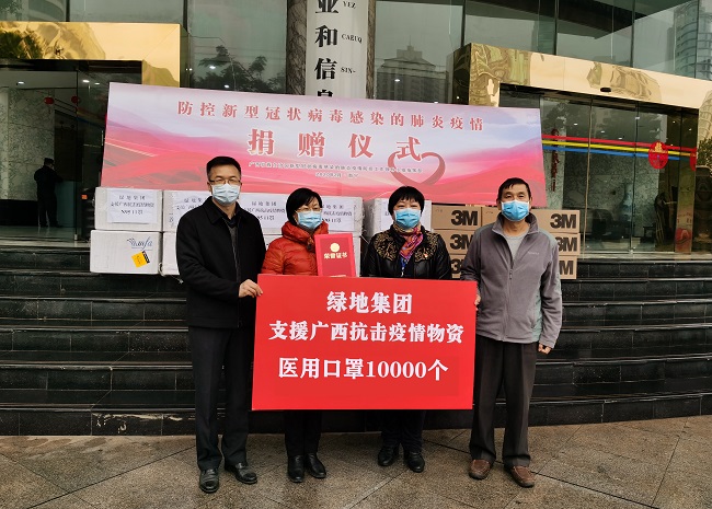 2020-02-09绿地集团向广西捐赠10000个医用口罩助力广西打赢疫情防控阻击战