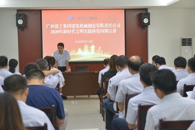 8月14日,广西建工集团建筑机械制造有限责任公司党委在办公楼三楼会议室举办2020年新时代文明实践所第四期宣讲活动。公司党委副书记、纪委书记、工会主席余耀森主讲。