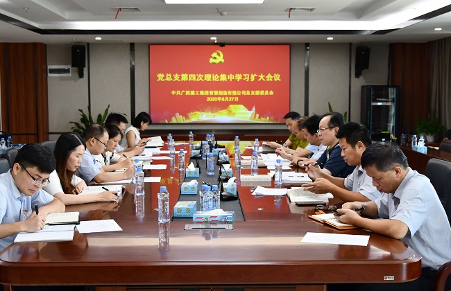8月27日,广西建工集团智慧制造有限公司党总支在建工产业园科研楼6楼会议室召开2020年第四次集中学习扩大会,公司党总支书记、董事长李长国主持并发言。领导班子成员林永、杨玉明、文书生、黄志祥、翟羽佳参加。