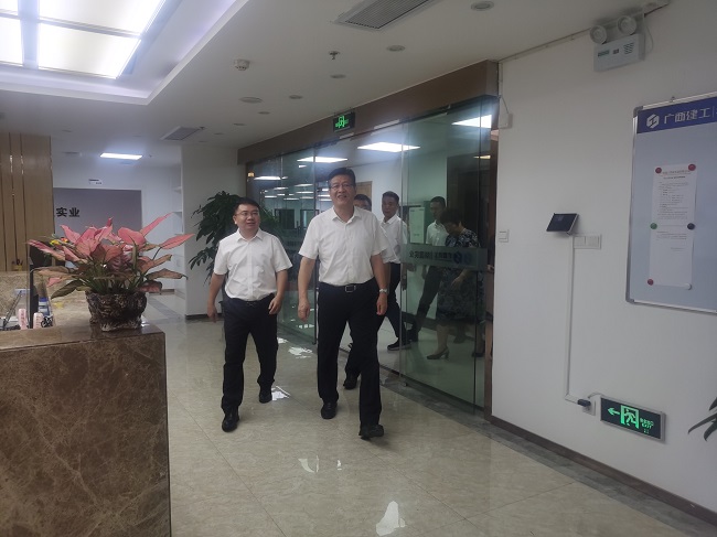 郑俊康一行首先参观建工华盈公司办公环境,随后在公司会议室召开调研座谈会。在认真听取公司董事长梁鸿天作的经营工作汇报后,他对广西建工集团混改成功表示祝贺,希望绿地集团与广西建工集团能够走得更远做得更好,柳州市也会一如既往地支持广西建工集团,共同建设柳州、发展广西。他表示,柳州自身优势在于有较大的钢材市场,也正在积极引进大型物流,将为建工华盈公司将来的发展提供更多的机遇,柳州市的各大金融部门也将会给予大力支持,希望建工华盈公司在柳州能够有更大的天地,做更大的贡献。