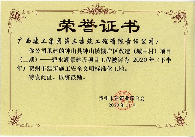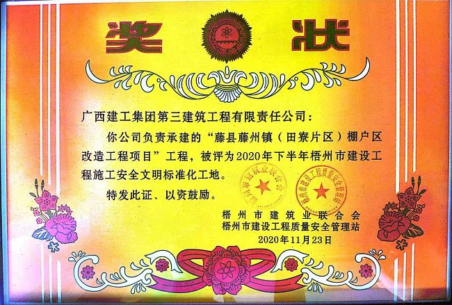 近日,从各地市工程建设质量安全管理协会获悉,广西建工集团第三建筑工程有限责任公司15个项目被评为各地市级2020年下半年安全文明标准化工地。