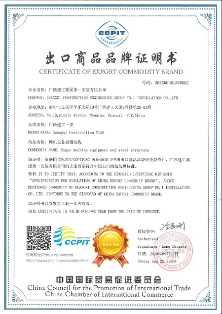 两项品牌荣誉的获得,得益于公司积极响应国家“一带一路”倡议,贯彻集团公司将一安打造成为“食糖生产线世界领先的制造商”定位,通过在东南亚以及非洲成功实施的多个糖业EPC项目,带动公司糖机设备、压力容器、钢结构等产品的出口,为中国制造发光海外贡献了广西力量。下一步公司将继续巩固在国际糖厂EPC建设领域的实力,做强做优设备制造产品的加工出口,不断提升企业知名度和品牌影响力!