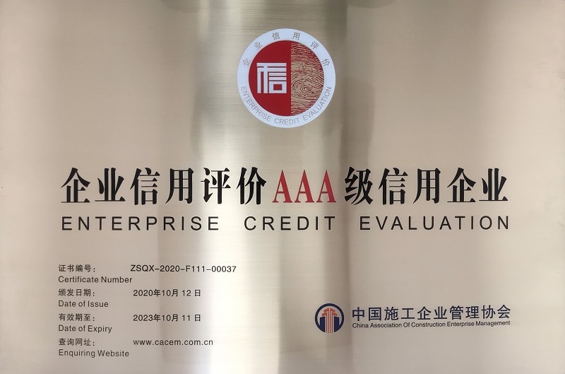 四建公司连续10年荣获“企业信用评价AAA级信用企业”荣誉称号
