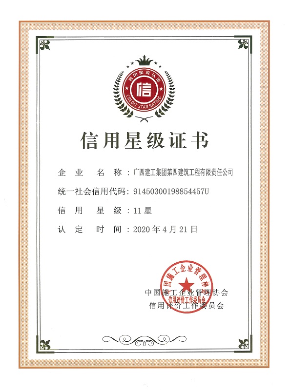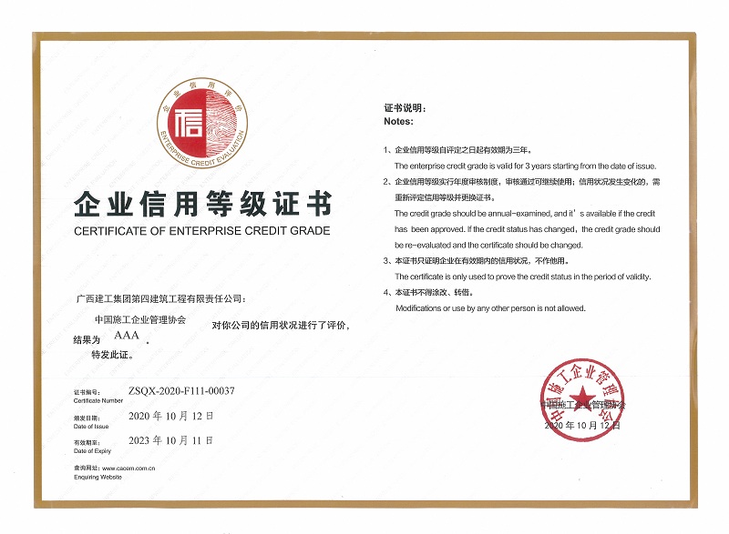 近日,中国施工企业管理协会在南宁公布2020年度工程建设信用评价AAA等级企业,广西建工集团第四建筑工程有限责任公司再次荣获“信用评价AAA等级企业”荣誉称号,标志着公司连续10年获得此项荣誉。