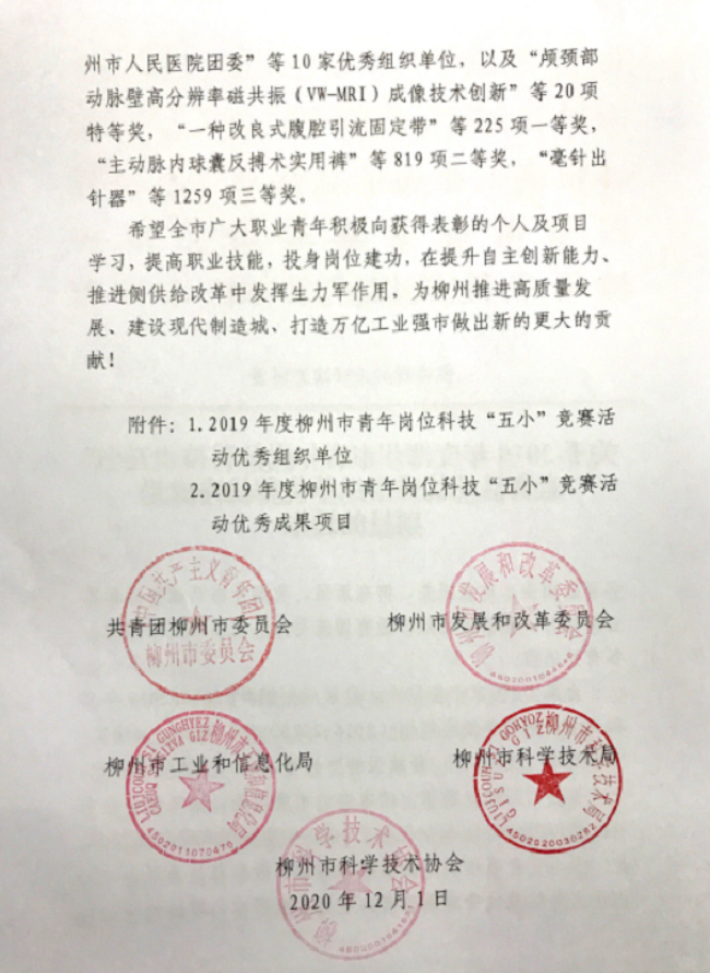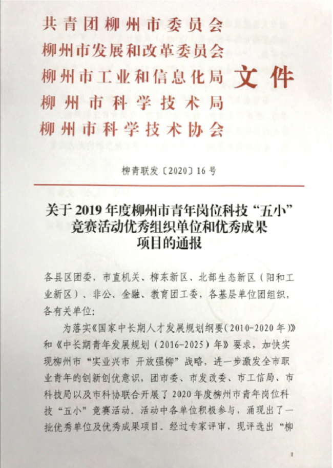 三建公司团委喜获柳州市2019年度科技“五小”竞赛活动优秀组织单位荣誉并覆盖所有奖项