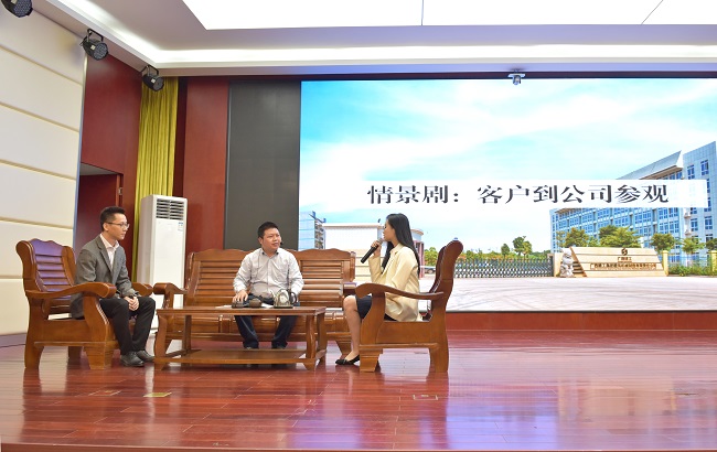 “演”,在培训中设置情景剧表演,培训人员结合既定场景进行自编自导自演,充分发掘集体智慧和个人潜力,将商务礼仪、产品性能特点、人性化设计以及售后服务保障等知识点融入到情景剧中,台上的人在“演”中学,台下的人在“剧”中学。“评”,组建专业评审团对情景剧进行“点评”,以及参演人员“互评”,指出优点和不足,提出改进意见和建议,让大家真正做到“知其然,知其所以然”。“看”,组织培训人员到八鲤、武鸣两大生产基地,亲自感受企业发展带来的工作、生活、办公环境的升级改善,通过文化体验厅、职工书屋等企业文化载体,感受公司混改后的发展理念和企业精神;到生产一线实地观看最新投入的自动化生产线和现代化加工设备,感受公司为做精做优产品,提供优质服务的决心信心和实际行动。“练”,采取小班制形势,将培训人员分成10人为一组,到现场开展实物教学和实操培训,一对一、手把手现场教学,让他们具体操作设备维修和产品整机调试安装等,亲自操作“建机智管家”“塔机助爬系统”“智能化驾驶室”等,进一步增强实操能力。