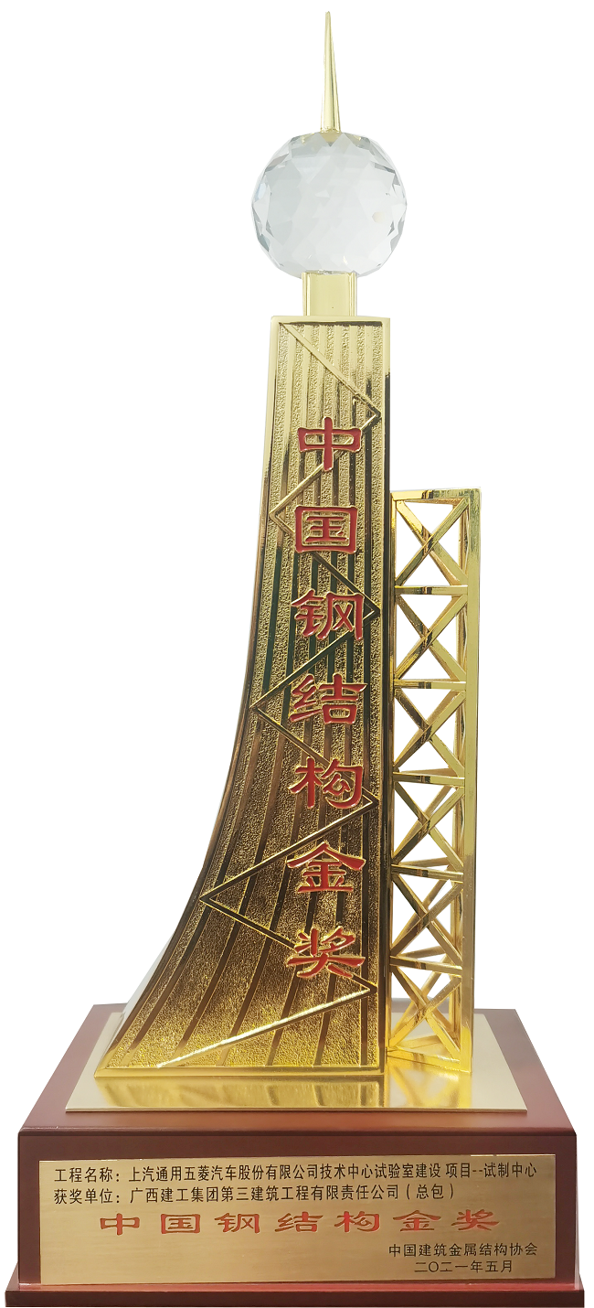 日前,2021年全国建筑钢结构行业大会在湖北武汉召开,大会颁发了2019年度中国钢结构金奖的奖杯和荣誉证书。由广西建工集团第三建筑工程有限责任公司承建的上汽通用五菱汽车股份有限公司技术中心试验室建设项目—试制中心工程荣获全国钢结构最高质量奖——中国钢结构金奖。三建公司目前累计荣获中国钢结构金奖7项。