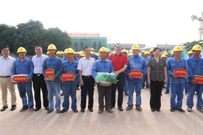 6月26日,自治区政协副主席、总工会主席陈刚带领慰问团到广西建工集团第二建筑工程有限责任公司南宁市江南污水处理厂水质提标及三期工程项目开展“送清凉”慰问活动。