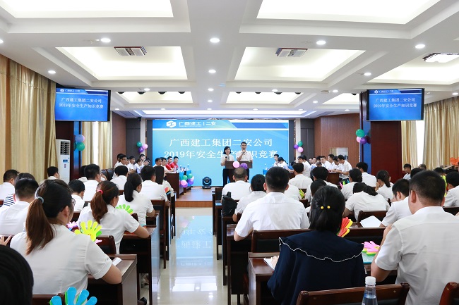 6月28日,广西建工集团第二安装建设有限公司在七楼会议室举办以“防风险、除隐患、遏事故”为主题的2019年安全生产知识竞赛。公司副总经理、代总工程师莫雄清出席并致辞,副总经理林建明,财务总监江静出席并为获奖单位颁奖。