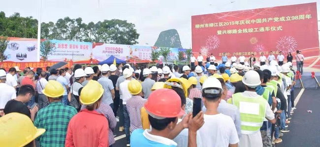 6月28日,柳州市柳江区2019年庆祝中国共产党成立98周年暨兴柳路全线竣工通车仪式在广西建工集团第五建筑工程有限责任公司承建的兴柳路三期道路工程项目现场举行,柳江区委书记区军雄宣布通车,区委副书记、区长玉秋静出席仪式。