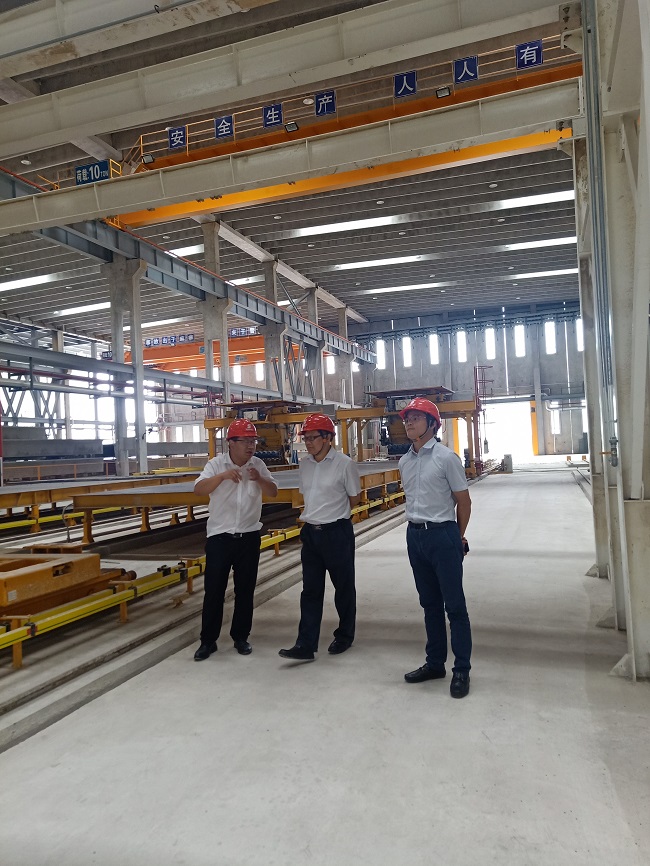 考察组详细了解PC厂设计布局、设备选型使用、生产工艺流程、双T板生产及安装等方面内容,就PC业务产业发展和市场需求进行沟通交流。