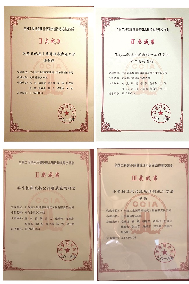 6月19日至7月5日,广西建工集团第四建筑工程有限责任公司先后受邀参加在辽宁、福州和呼和浩特三地举办的2019年度“全国工程建设质量管理小组活动成果交流会”,选送的3项QC成果获评国家级Ⅱ类,1项获评国家级Ⅲ类。