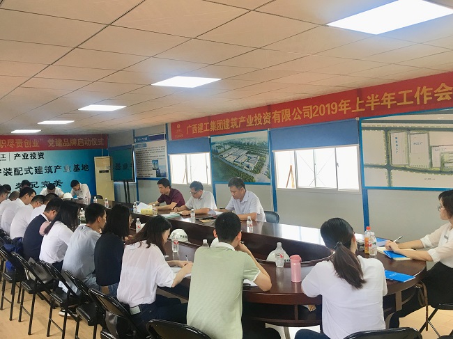 7月22日,广西建工集团建筑产业投资有限公司2019年上半年工作会议在南宁装配式建筑产业基地召开。会议传达集团公司2019年上半年经济运行分析会精神,总结公司上半年工作情况,部署下半年工作任务。公司党支部书记、董事长黄洪出席并讲话,总经理欧阳崎作上半年工作报告,班子成员舒凯出席。