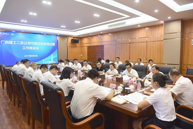 8月2日,广西建工集团第二安装建设有限公司召开亏损项目专项治理工作推进会。公司党委副书记、纪委书记、工会主席、亏损项目专项治理工作领导小组办公室主任黄水保,财务总监、亏损项目专项治理工作领导小组办公室第一副主任江静出席会议并讲话。