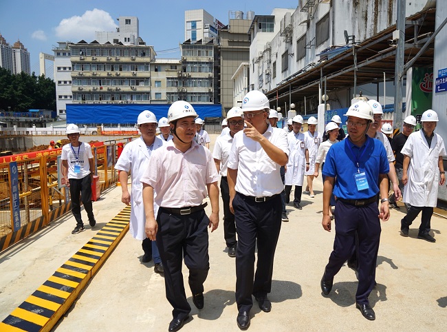 黄俊华深入项目现场查看施工管理情况、项目工程总进度情况,了解当前急需解决的问题,对加快项目建设提出三点要求。一是参建各方要提高政治站位,正确认识该项目建设建成投入使用的重要意义,要协同推进,努力克服遇到的困难,确保按时交付使用。二是加强施工管理,既要抓好项目内施工的进度、质量、安全,也要抓好项目周边建筑稳定的监测及安全。三是做好沟通协调工作,将项目施工对周边造成的影响降到最低,为顺利施工创造有利条件。