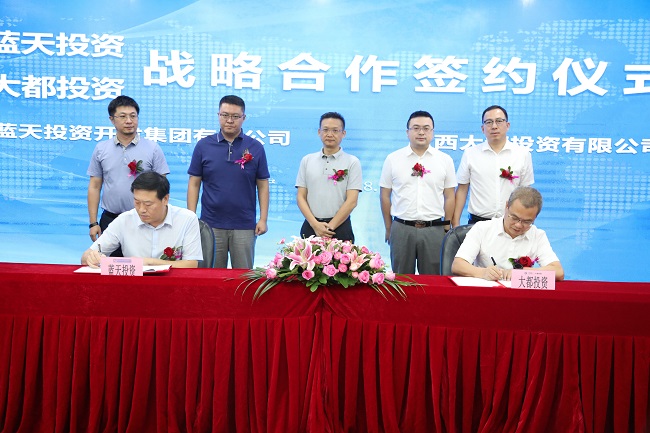 8月22日,广西大都投资有限公司与烟台蓝天投资开发集团有限公司战略合作协议签约仪式在建工大厦1号楼6楼会议室举行。广西建工集团有限责任公司总经理助理、投资发展部部长黄鸣出席。公司党总支书记、董事长邓少新和烟台蓝天投资开发集团总经理、烟台市城市建设投资有限责任公司董事长许奎山分别致辞,并代表双方在协议书上签字。副总经理胡朝春主持。