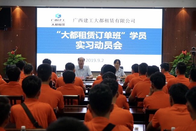 9月2日,广西建工大都租赁有限公司首批“订单班”学员到公司实习。公司副总经理陈树华出席学员实习动员会。