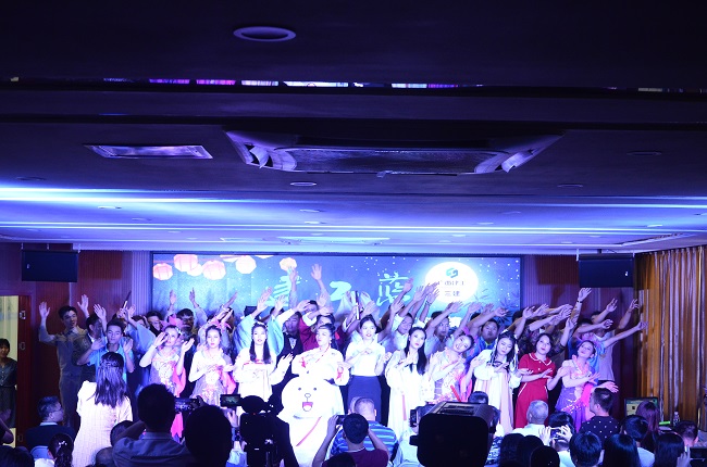 两个多小时的中秋晚会,台上歌声嘹亮,舞姿翩翩;台下神情专注,掌声雷动,始终洋溢着团圆的喜悦与美满的祝福。穿插于节目当中的现场游戏更是新颖别致,高潮迭起。领导与员工同台娱乐,演员与观众热情互动,彰显了桂分的团结与和谐、激情与活力。最后,晚会在大合唱《我们都是追梦人》中落下帷幕。